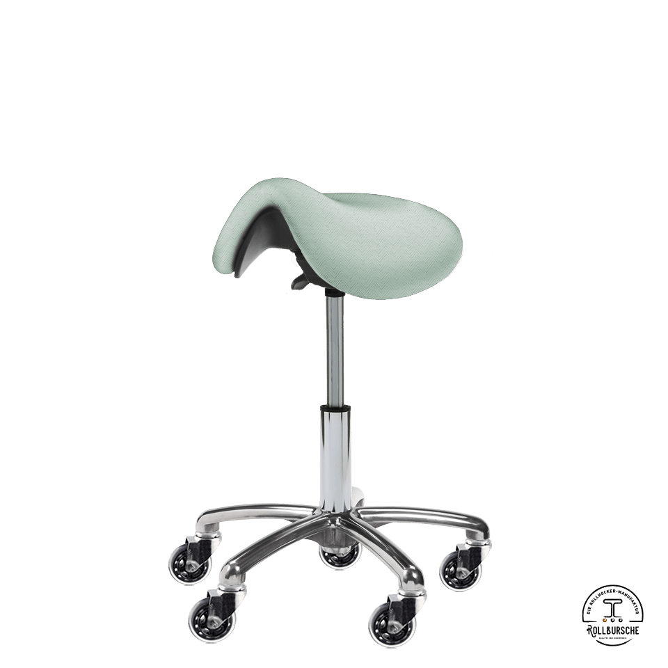 Der Bürohocker Helenas Trecking überzeugt durch seinen außergewöhnlichen Polsterbezugstoff mit feiner Textilprägung aus der Skai® Torino Linie. Der besondere Look im Fischgrätendesign in der Pastell-Farbe Agave Mint wird komplettiert mit silbernem Unterbau aus kleinem Basis-Fußkreuz und den super modernen Skater-Rollen.
