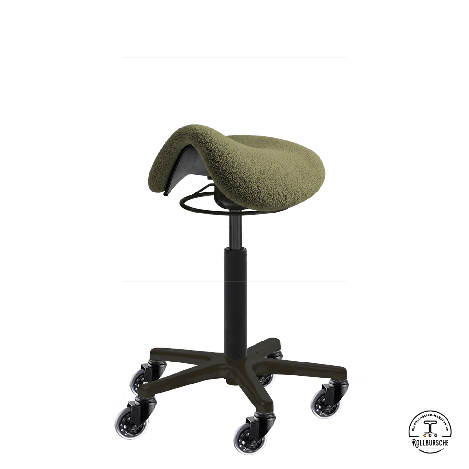 Design-Hocker Amirs Trecking ist bezogen im flauschig warmen TEDDY Bezug in oliv. Kombiniert mit Höhenverstellung mittels schwarzer Ringauslösung, dem schwarzen Maja Fußkreuz und farblich passender Gasfeder sowie den trendigen ebenfalls schwarzen Skate-Rollen wird Dein Rollbursche zum stylischen Wohnaccessoire.