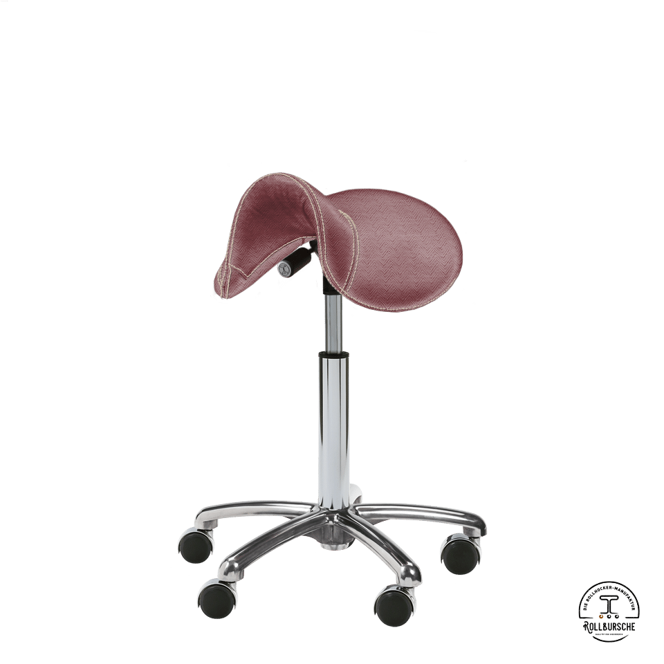 Der Kosmetikhocker Ingas Western überzeugt mit einem Bezugstoff aus der Skai® Torino Linie mit Fischgrät-Design in der Pastellfarbe Marsala und feiner Textilprägung. Die beigefarbene Ziernaht unterstreicht den besonderen Look. Hier ist modernes Aussehen mit gesundem Sitzen vereint. Der breite Sattelsitz macht Sitzen sicher und komfortabel. Die Kombination mit dem klassischen Fußkreuz und den edlen ungebremsten Deluxe Rollen in silber machen den Rollburschen zu Deinem stylischen Begleiter in Deinem Studio. Mit mittlerer Gasfeder.